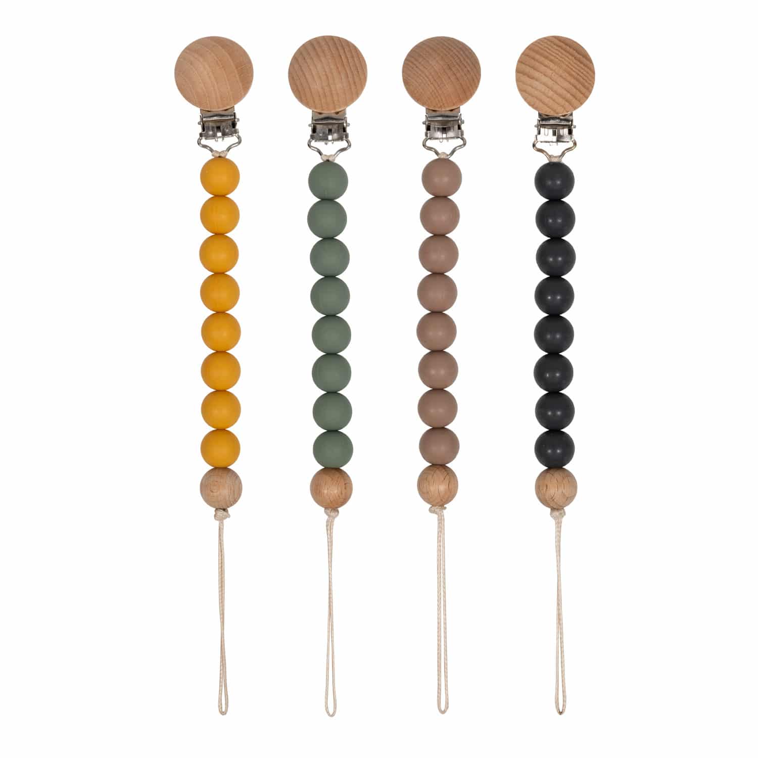 Mooie kleuren en natuurlijke houtaccenten maken van een speenkoord een echte eyecatcher.